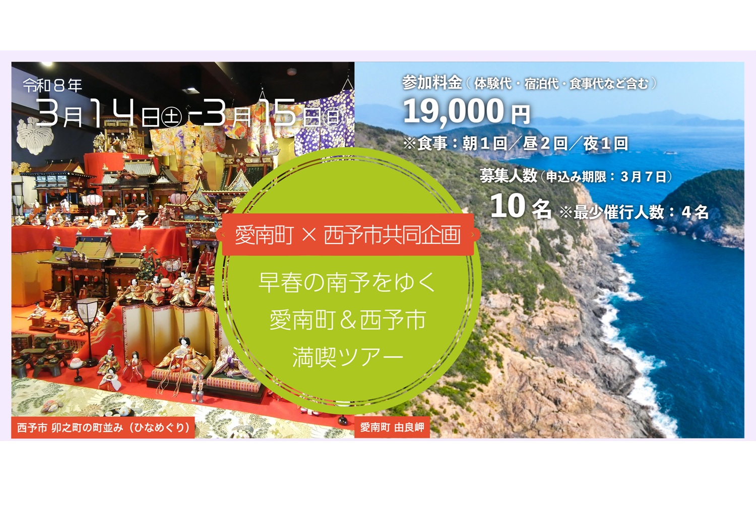 早春の南予(愛南町と西予市)をまるごと楽しむ1泊2日のツアーです。